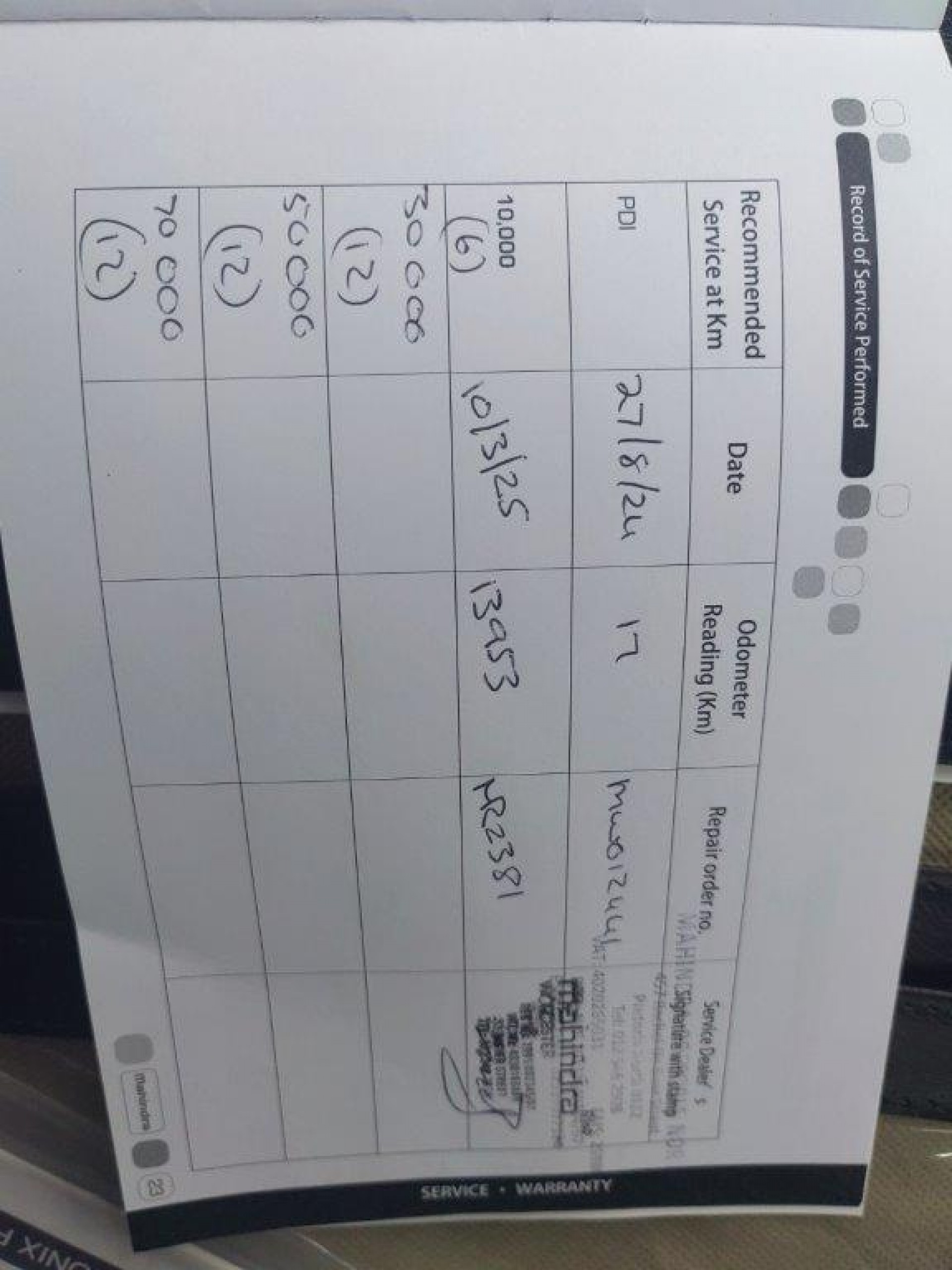 WARRANTY OF THIS MAHINDRA PIK UP